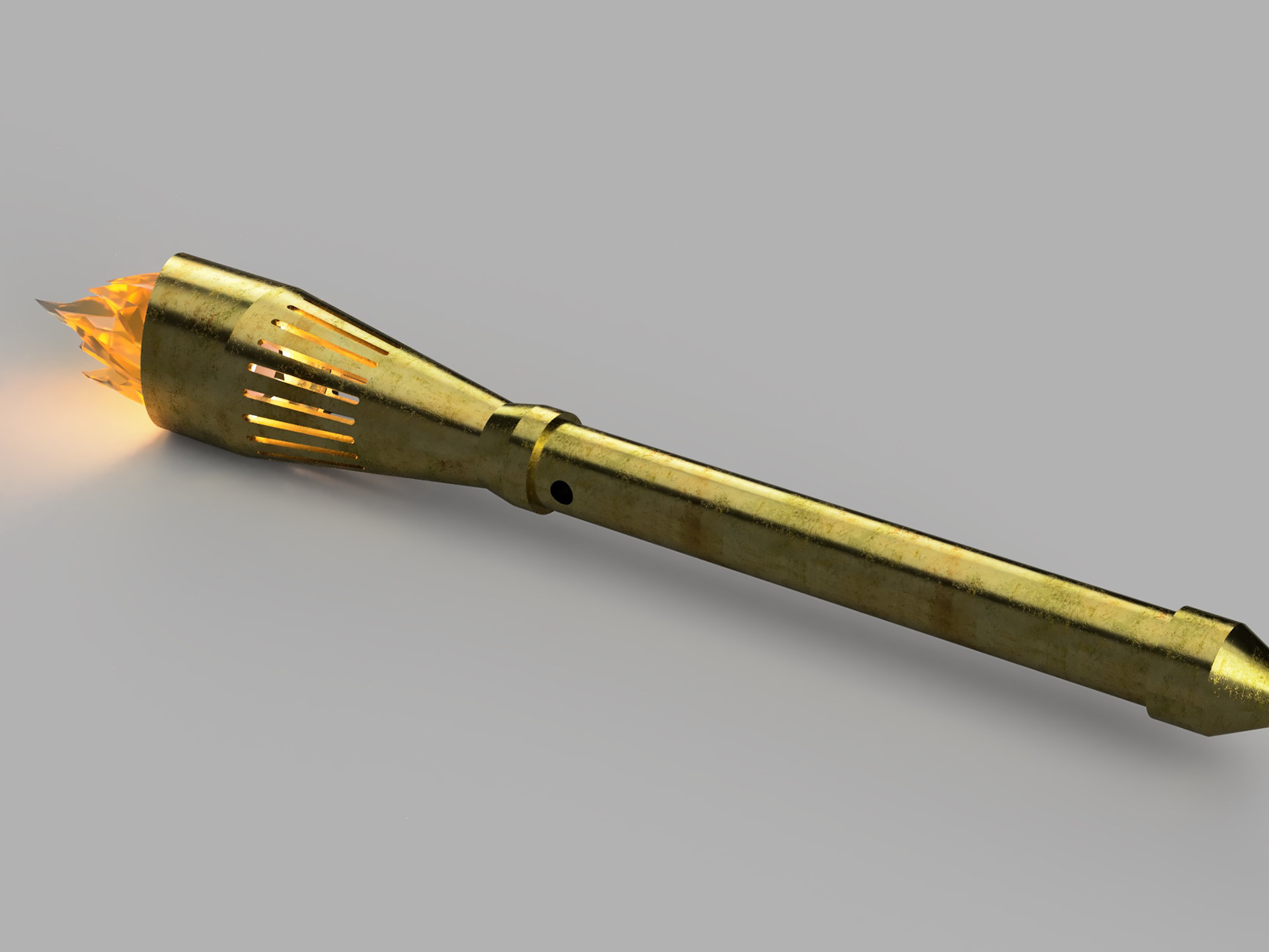 This is a custom prop torch built for a stage play. Due to the constraints of not being able to use fire on stage, I built a custom 3D printed LED torch that this production could safely substitute for the real thing. Using a pair of 18650 lithium battery cells, a BMS board, and an Arduino Pro Micro to drive a string of LEDs, a fire effect was able to be achieved. Parts of the prop were modeled in Fusion 360 and printed using my Ender 5, while the main handle is comprised of a hardware store 3/4 inch PVC pipe.